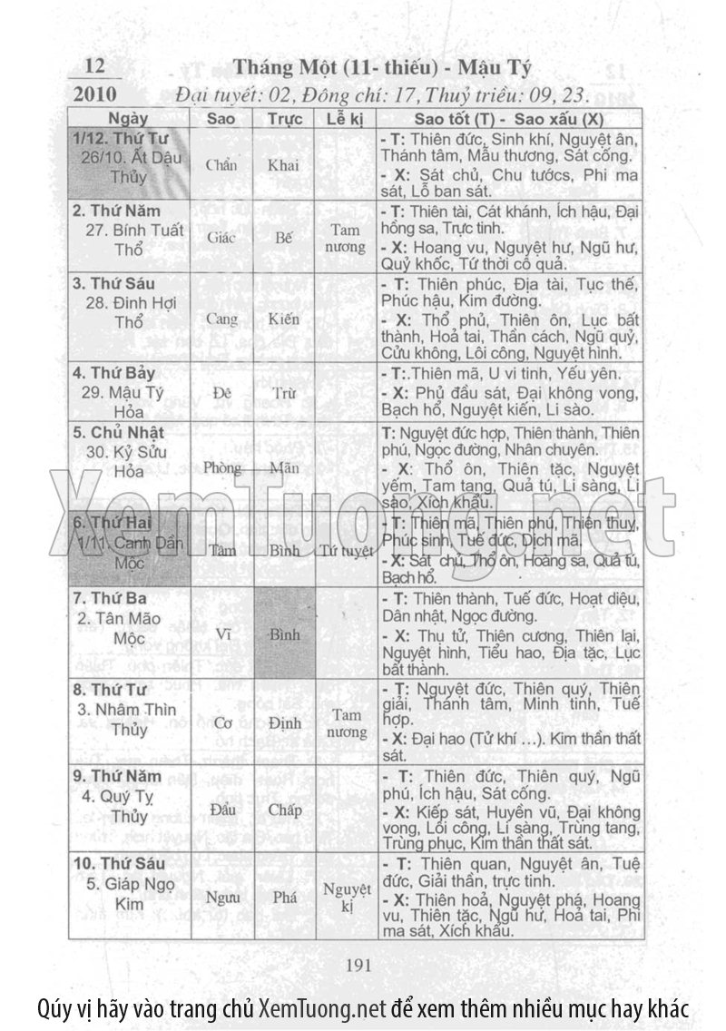 • Xem Ngày Tốt Xấu Vạn Sự: Cung cấp thông tin chính xác về ngày Hoàng đạo, Hắc đạo, giờ tốt xấu (theo các phương pháp cổ truyền như Tam Tông Miếu, Khổng Minh Lục Diệu...) để bạn lựa chọn được thời điểm lý tưởng cho mọi công việc quan trọng.