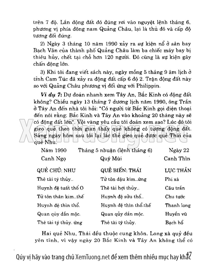+ Sách chủ yếu giới thiệu các ví dụ đoán quẻ tích lũy được trong thực tiễn của tác giả. Trong sách có phương pháp đoán theo tượng quẻ, đoán theo tượng hào và phương pháp đoán kết hợp. Ngoài ra có một số quẻ được chọn lựa từ tinh hoa của các học viên, một số nữa là chọn những quẻ hay, điển hình trong sách cổ. Trong lời giải quẻ luôn thể hiện nhất quán các phương pháp đoán quẻ cơ bản là: “một hào động”, “tượng quẻ”, “dịch lí”, “số lí”, “ngũ hành sinh khắc” và “ngoại ứng”.