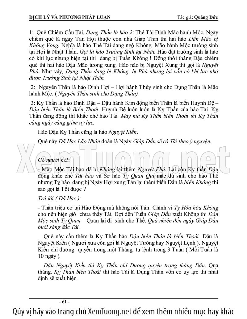 Sách "Dịch lý và phương pháp luận" của tác giả Quảng Đức được tóm soạn vào năm 1980 mới đầu dùng để làm tài liệu hướng dẫn các lớp Dịch học tại Việt Nam, tổ chức riêng lẻ tại Nha Trang. Thành phần tham dự đều là các tu sĩ Phật Giáo cho nên phần đầu căn bản về Âm Dương, Ngũ hành sinh khắc hầu hết đã thấu triệt, chỉ đi thêm sâu vào phần phương pháp luận đoán.