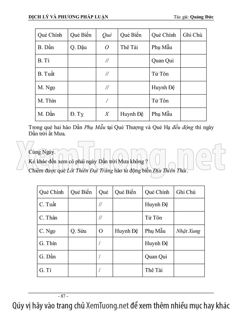 Sách "Dịch lý và phương pháp luận" của tác giả Quảng Đức được tóm soạn vào năm 1980 mới đầu dùng để làm tài liệu hướng dẫn các lớp Dịch học tại Việt Nam, tổ chức riêng lẻ tại Nha Trang. Thành phần tham dự đều là các tu sĩ Phật Giáo cho nên phần đầu căn bản về Âm Dương, Ngũ hành sinh khắc hầu hết đã thấu triệt, chỉ đi thêm sâu vào phần phương pháp luận đoán.