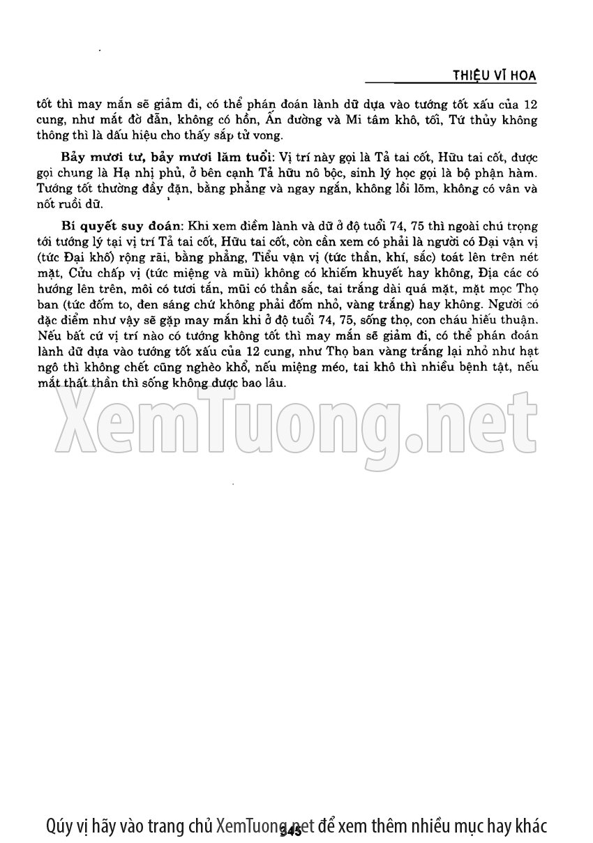 Sách "Tìm hiểu nhân tướng học theo kinh dịch" của tác giả Thiệu Vĩ Hoa cho chúng ta một cách nhìn toàn diễn về bản chất của thuật nhân tướng. Hầu hết chúng ta khi nói đến tướng thuật đều nghĩ đến khuôn mặt. Tuy nhiên như vậy có nghĩa là chỉ quan tâm đến phần hình dạng bên ngoài mà chưa chú trọng đến bản chất bên trong của thuật nhân tướng. Tướng thuật là nhìn tướng một người mà đoán được tuổi thọ, tài lộc, vận hạn... của họ, thậm chí của tổ tiên, cha mẹ, anh chị em trong gia đình người đó.