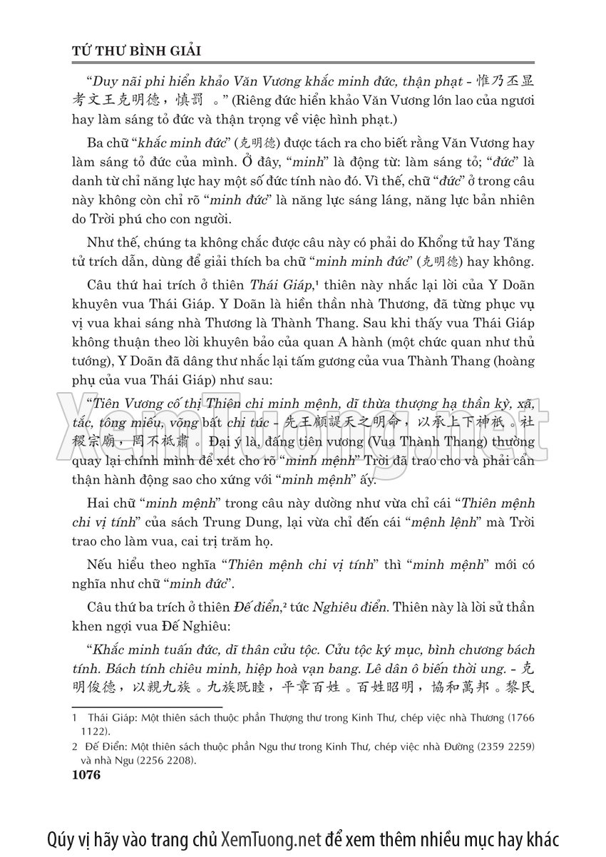 Sách "Tứ thư bình giải" của tác giả Lý Minh Tuấn nhằm cho chúng ta thấy được toàn bộ quá trình phát triển và trải qua thăng trầm của bộ tứ thư. Bộ sách này của Nho giáo ra đời cách nay khoảng hơn 2.000 năm, đã trải qua bao sóng gió theo những giai đoạn thăng trầm của lịch sử Trung Hoa. Lần thì bị Tần Thủy Hoàng đốt, lần thì bị tiêu tan trong các cuộc nội chiến triền miên của Trung Hoa. Do vậy khó tránh được nạn "tam sao thất bản". Đến đời nhà Tống, bộ sách này mới được các danh Nho tu chỉnh.