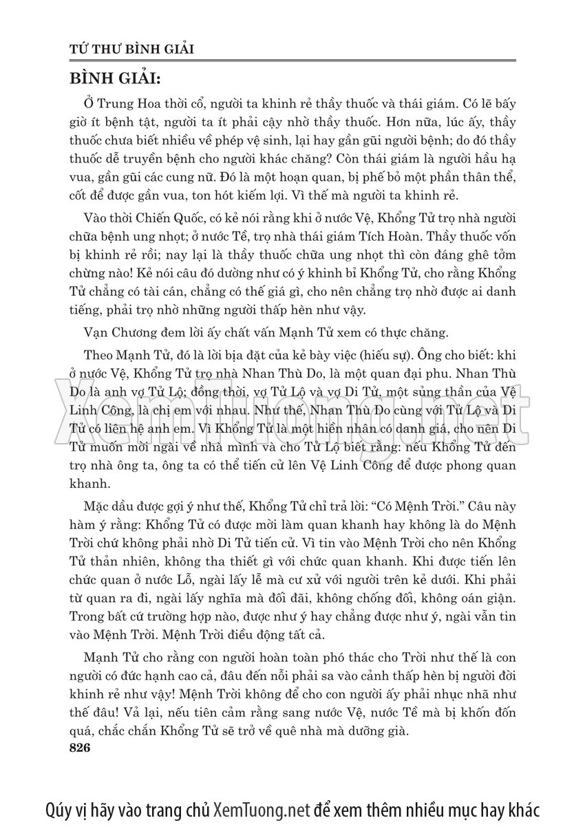 Sách "Tứ thư bình giải" của tác giả Lý Minh Tuấn nhằm cho chúng ta thấy được toàn bộ quá trình phát triển và trải qua thăng trầm của bộ tứ thư. Bộ sách này của Nho giáo ra đời cách nay khoảng hơn 2.000 năm, đã trải qua bao sóng gió theo những giai đoạn thăng trầm của lịch sử Trung Hoa. Lần thì bị Tần Thủy Hoàng đốt, lần thì bị tiêu tan trong các cuộc nội chiến triền miên của Trung Hoa. Do vậy khó tránh được nạn "tam sao thất bản". Đến đời nhà Tống, bộ sách này mới được các danh Nho tu chỉnh.
