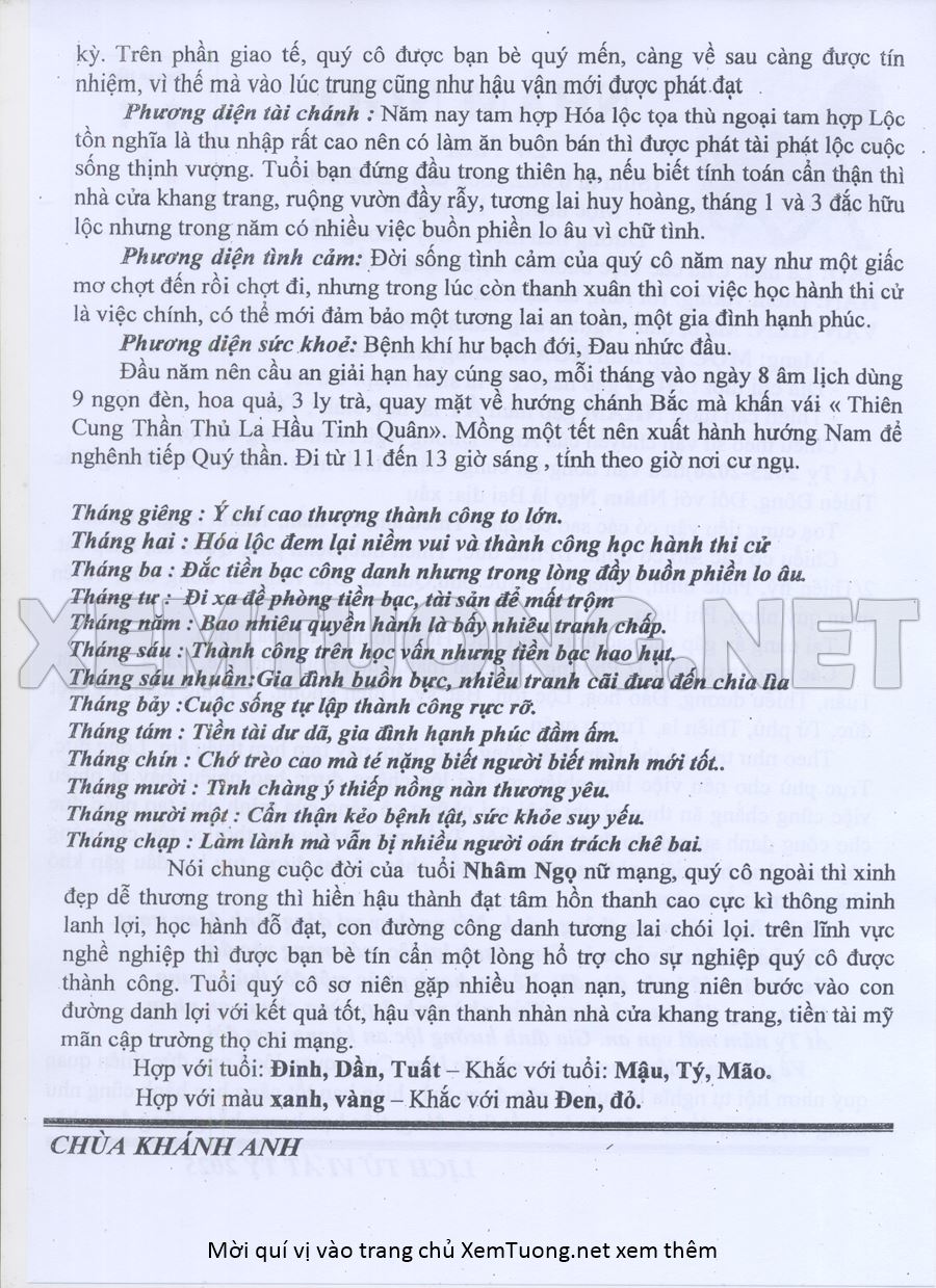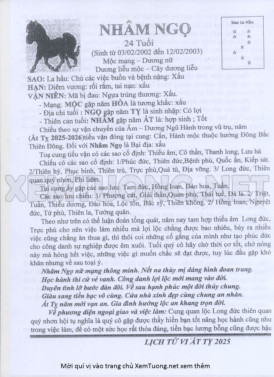 Tử Vi Năm Ất Tỵ 2025 mạng nữ NHÂM NGỌ