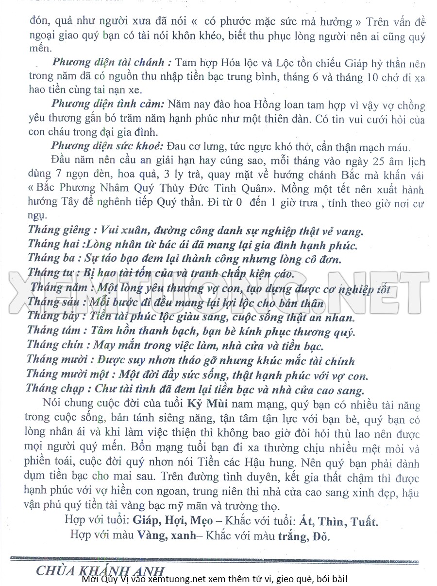 Tử Vi Năm Bính Ngọ 2026 mạng nam KỶ MÙI