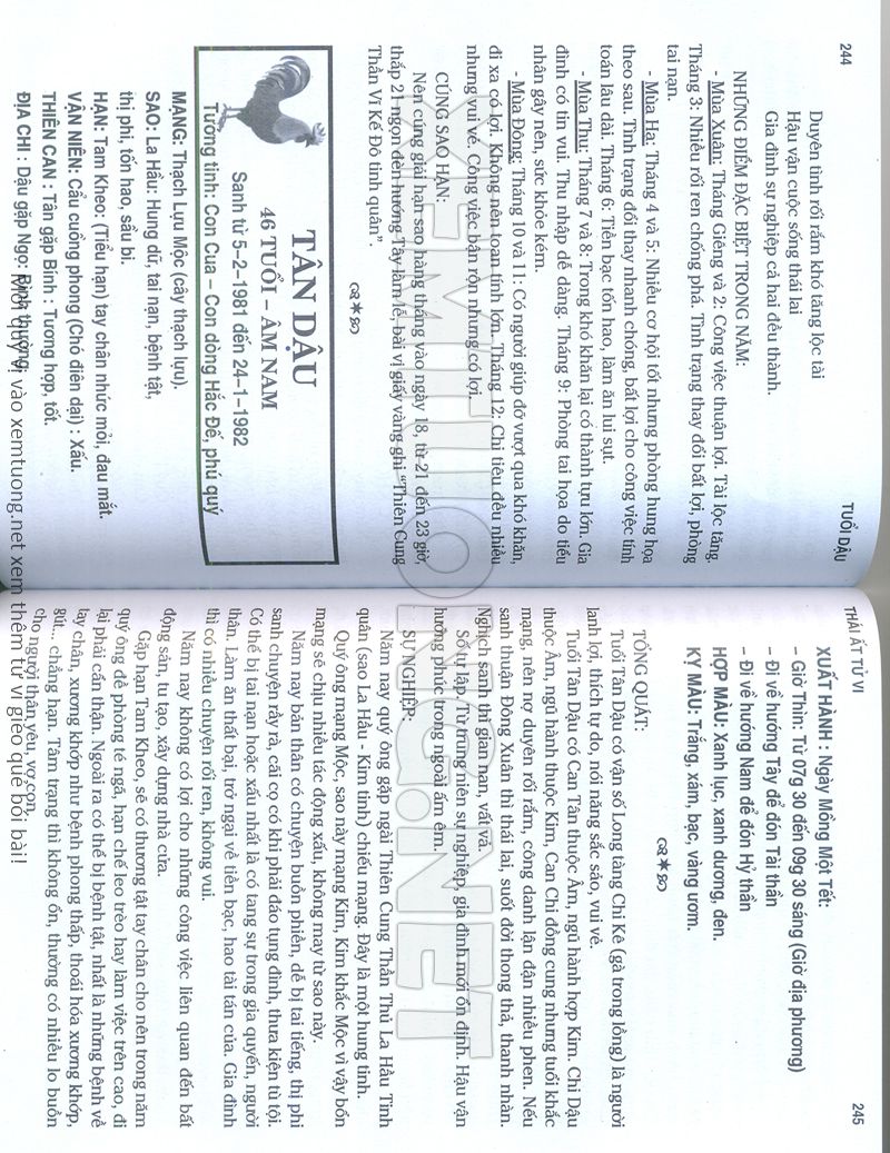 (Lưu ý: Thái Ất Tử Vi được chúng tôi scan từ sách, do đó mỗi tuổi sẽ có nhiều trang, quý vị xem xong hãy nhấn vào trang tiếp theo để xem hết phần tuổi muốn xem. Nếu quý vị xem bằng điện thoại thì hãy kéo qua lại để xem phần bị khuất.)